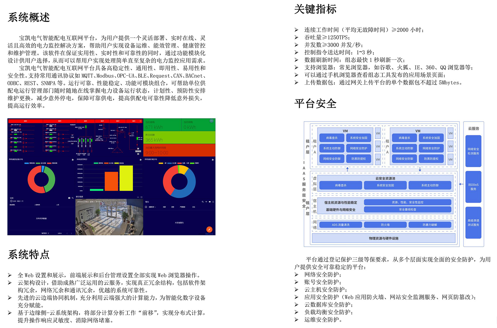 宝凯电气智能配电互联网平台,为用户提供一个灵活部署、实时在线、灵活且高效的电力监控解决方案,帮助用户实现设备运维、能效管理、健康管控和维护管理。该软件在保证实用性、实时性和可靠性的同时,通过功能模块化设计供用户选择,从而可以帮用户实现处理简单直至复杂的电力监控应用需求。宝凯电气智能配电互联网平台具备高稳定性、通用性、即用性、易用性和安全性。支持常用通讯协议如MQTT、Modbus、OPC-UA、BLE、Request、CAN、BACnet、ODBC、REST、SNMPA等。运行可靠、性能稳定、功能可模块组合,可帮助单位供配电运行管理部门随时随地在线掌握电力设备运行状态,计划性、预防性安排维护更换,减少意外停电,保障可靠供电,提高供配电可靠性降低意外损失,提高运行效率。